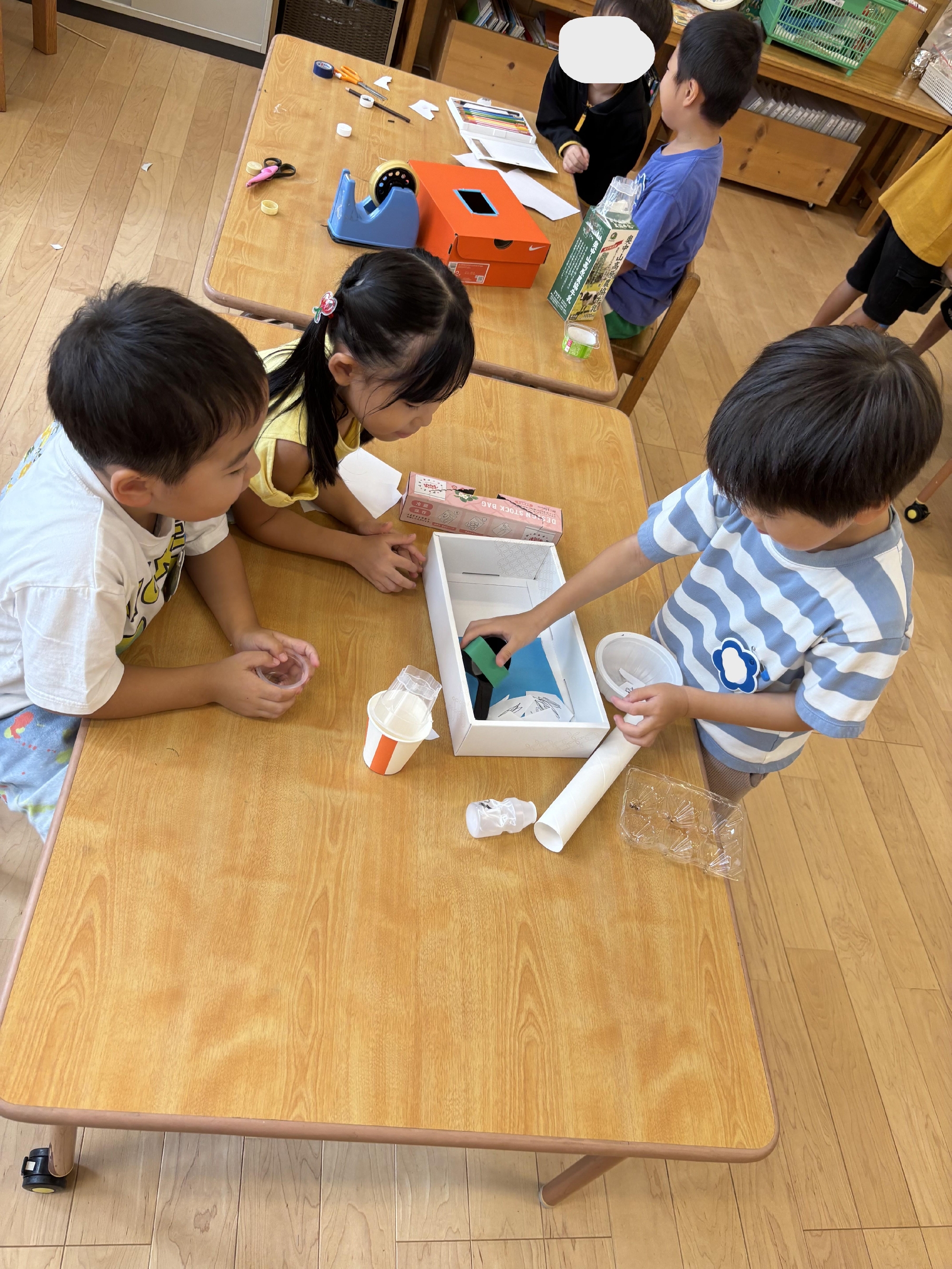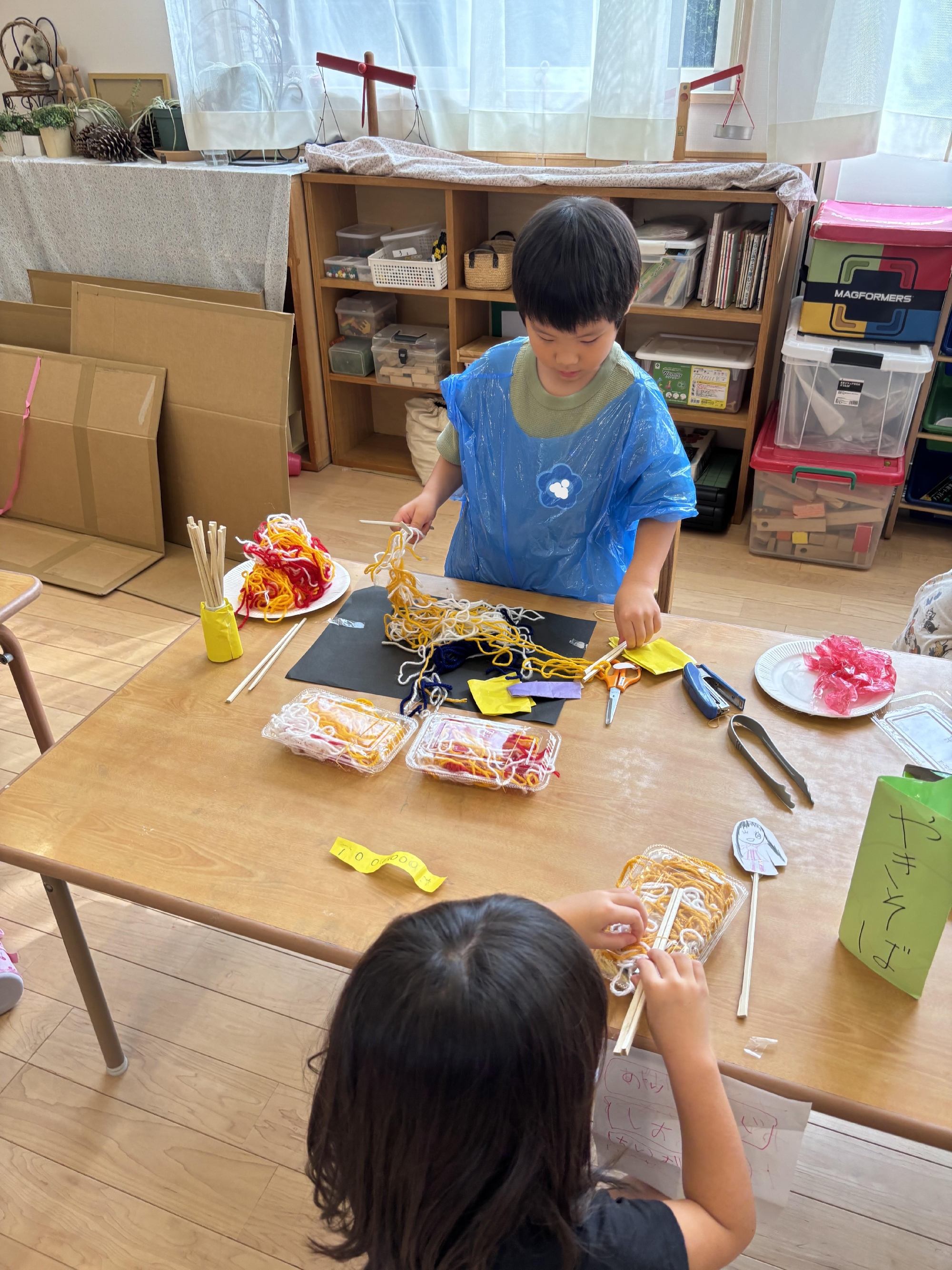 友だちの作る姿を見て自分も作ってみたり、お店屋さんになりきって「いらっしゃい、いらっしゃい!」と大きな声で言ってみたり。子ども達の楽しそうな声がたくさん聞こえてきます♪