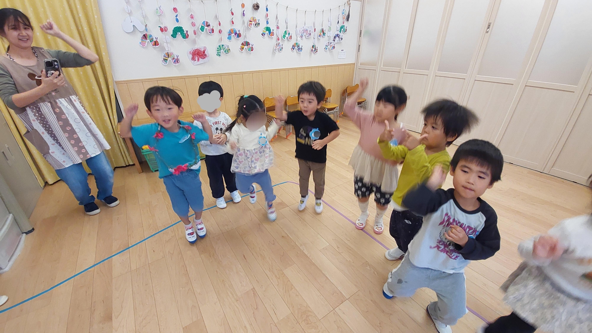 3歳児クラスのあさぎ組にとって、初めてたくさんのお客さんの前で