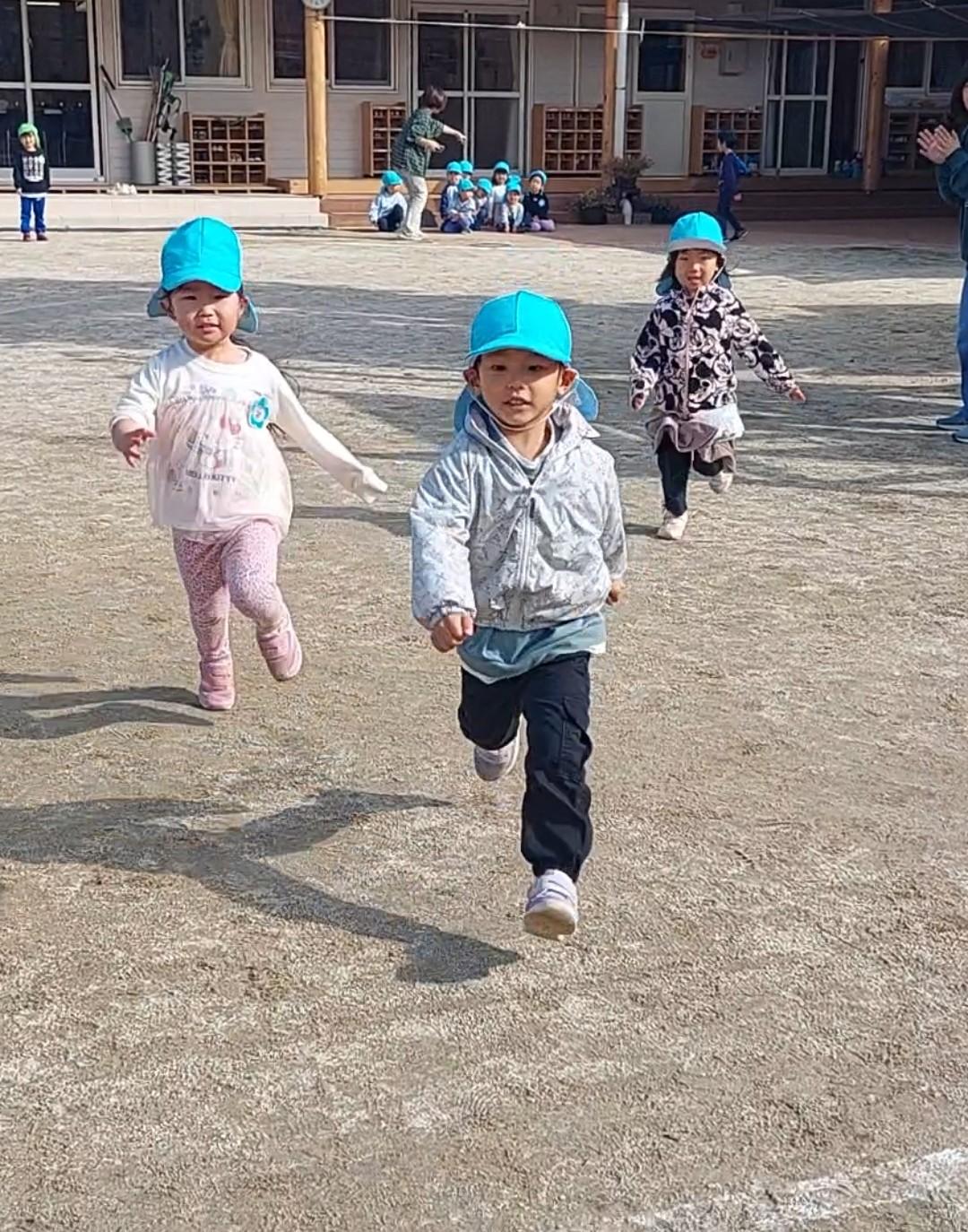 かけっこは走る心地よさを味わい、走るって楽しい!!と思えるよう