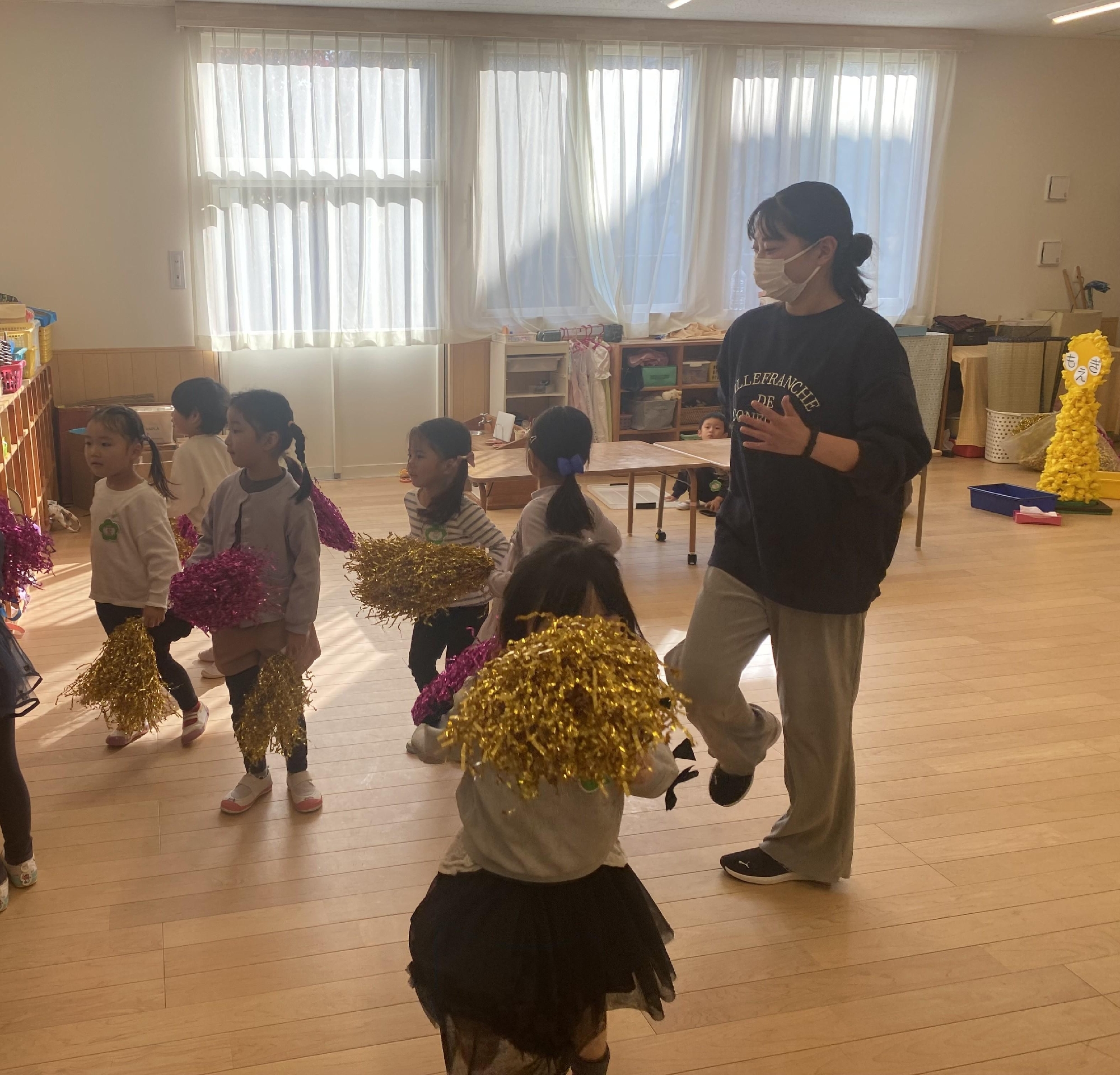 ダンスが大好きな子どもたち🌟自主活動中にるり組やあさぎ組に見せたい!ということだったのでクラスに招いて踊りを見せていました。異年齢で交流しながらそれぞれのダンスを踊っていることもありましたよ(^^♪