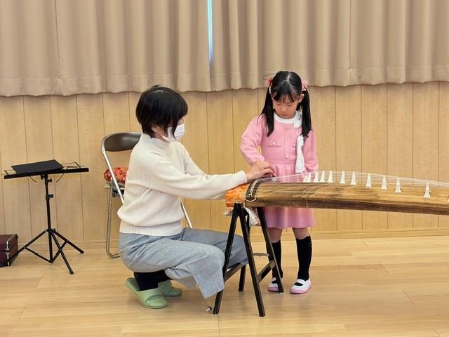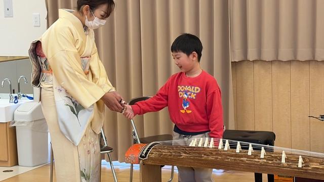 るり組は、一人ずつお琴の体験をさせてもらいました。