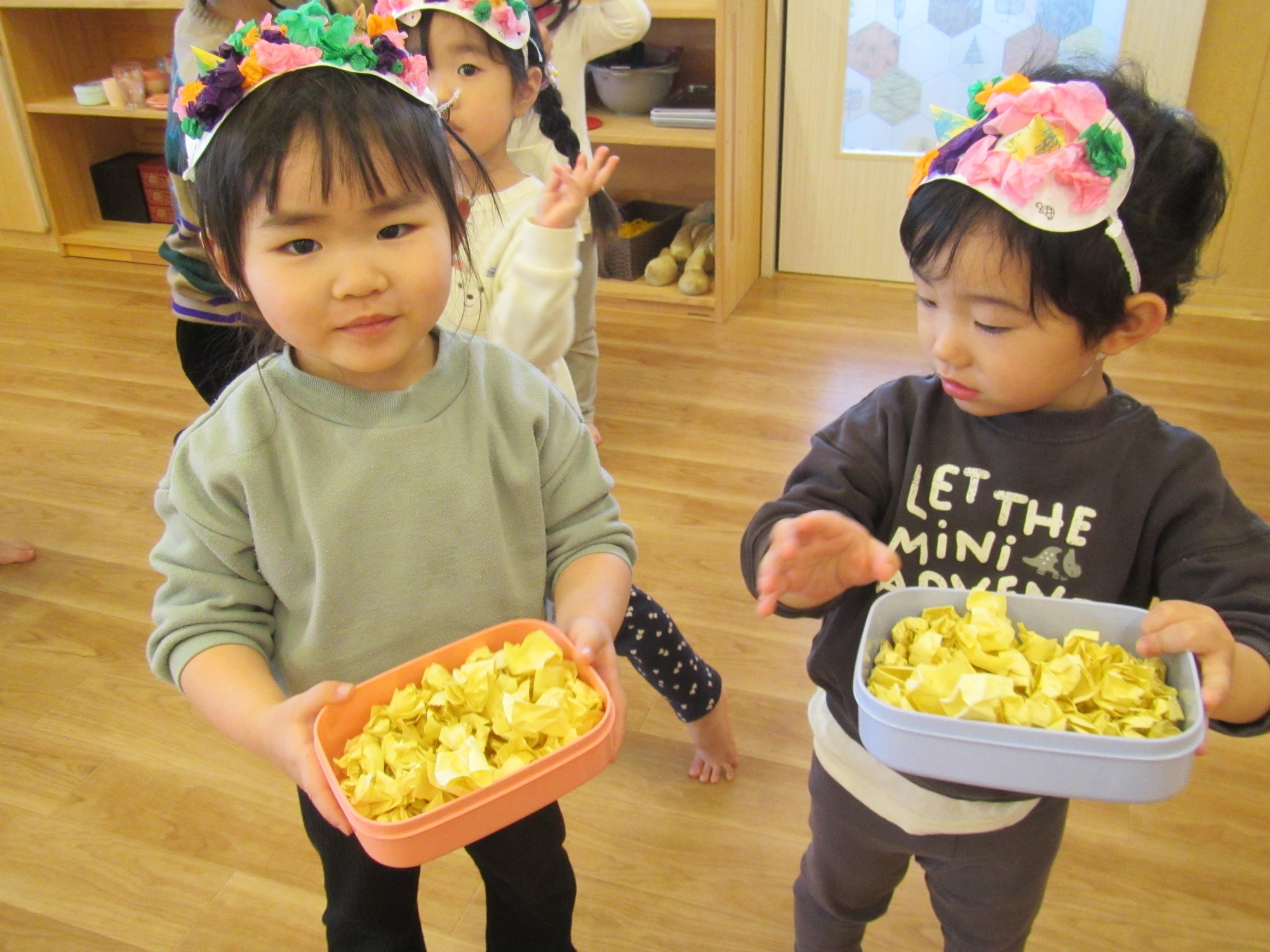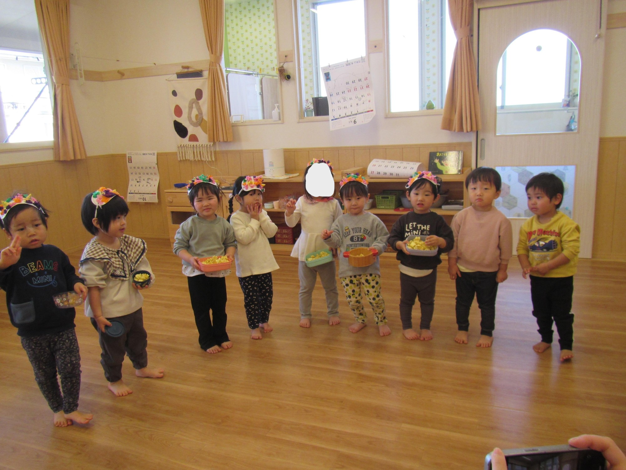 『おにのパンツ』の大型絵本を見たり、『まめまき』の歌もうたって、節分の雰囲気を味わいましたよ🎵
