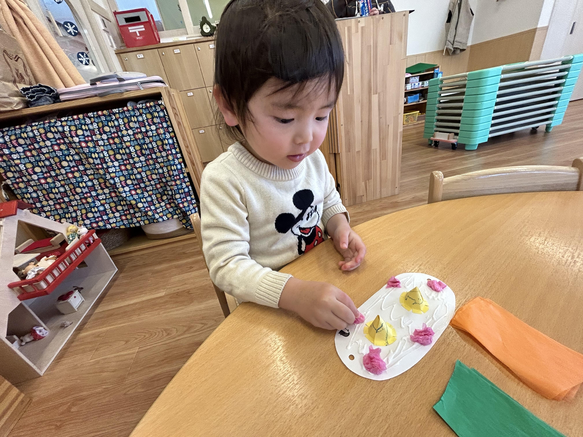幼児クラスのいわし焼きや節分の行事に参加させてもらい、乳児クラスでも日本の文化に少し触れることができました。
