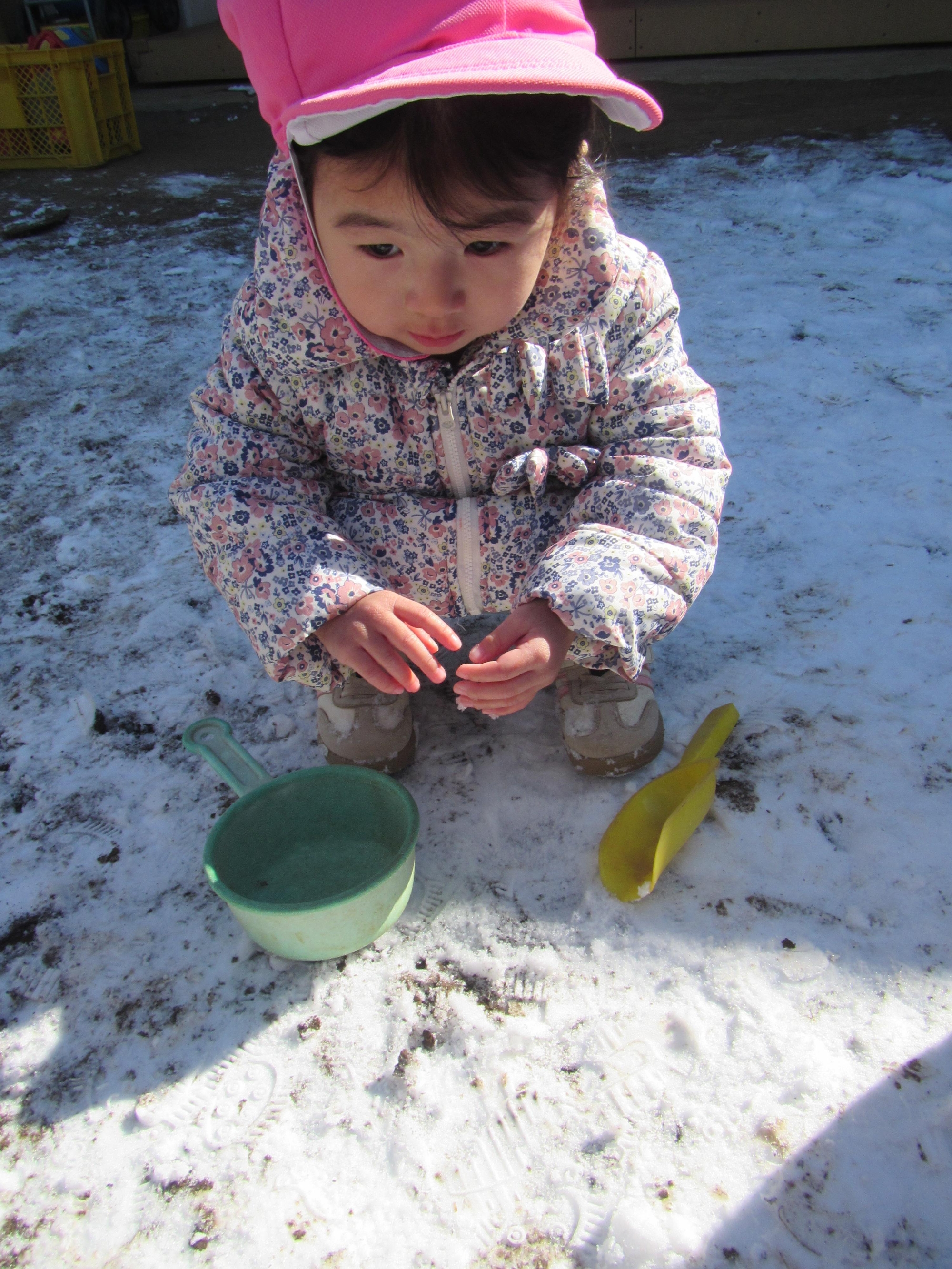 日曜日の雪がまだ残っていたので、みんなで雪に触れてみましたよ⛄