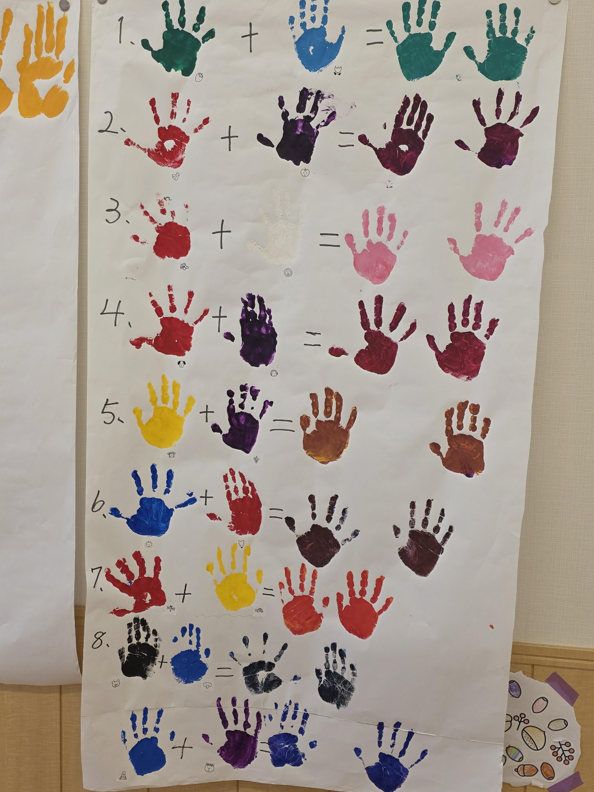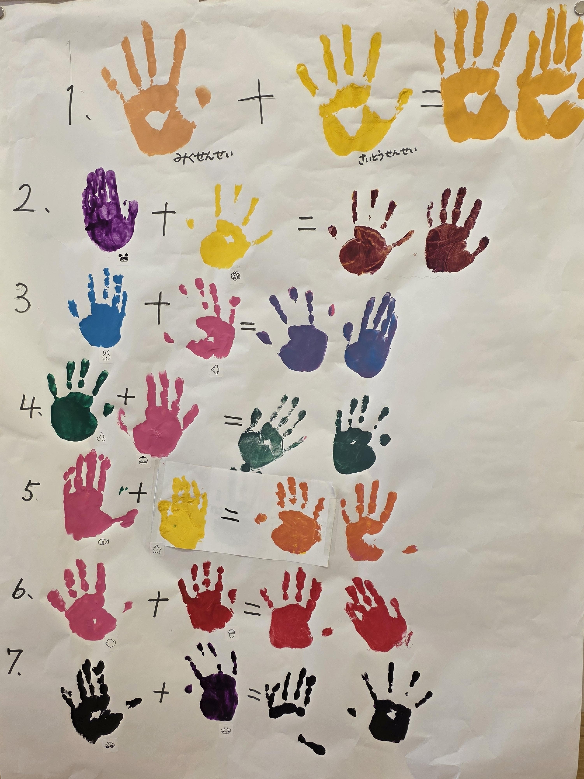 その次に2つの色を混ぜたらどうなるのか…考えて、相手の子と手を重ねてまぜまぜ!!!