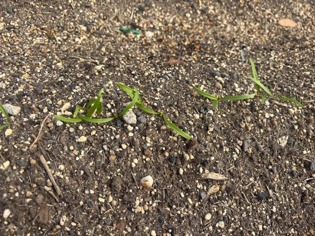 先日ようやく芽を出しました。なんとびっくり!全然芽の形が違うんです。これには担任達もびっくりでした。